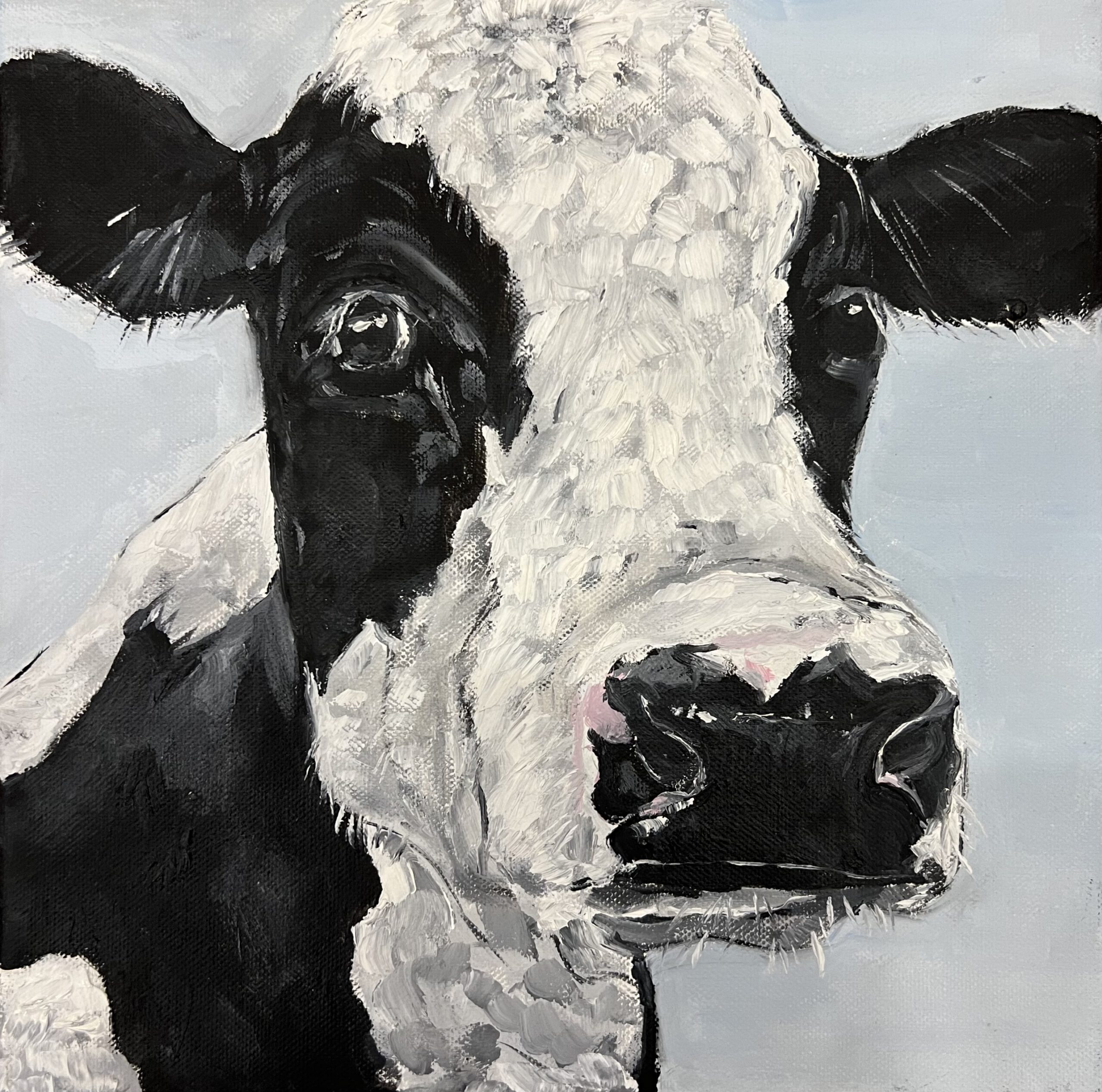 « MOO n° 1 » est la première peinture d’une série consacrée aux vaches.